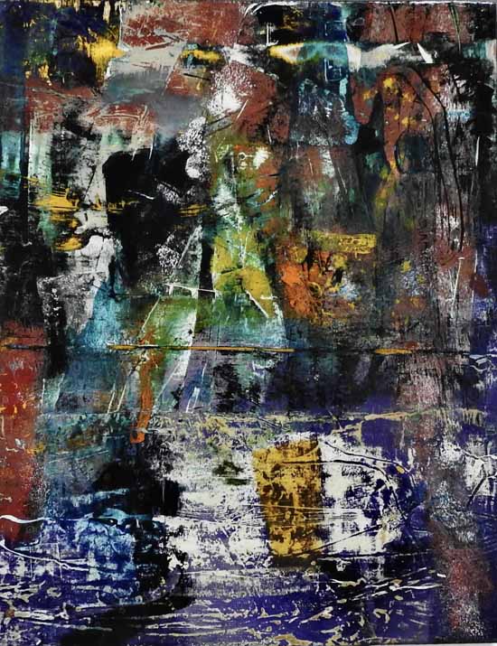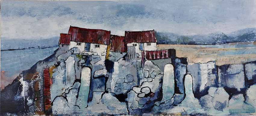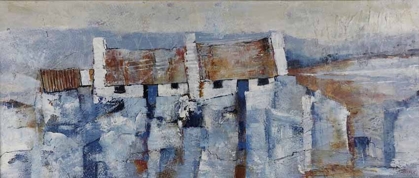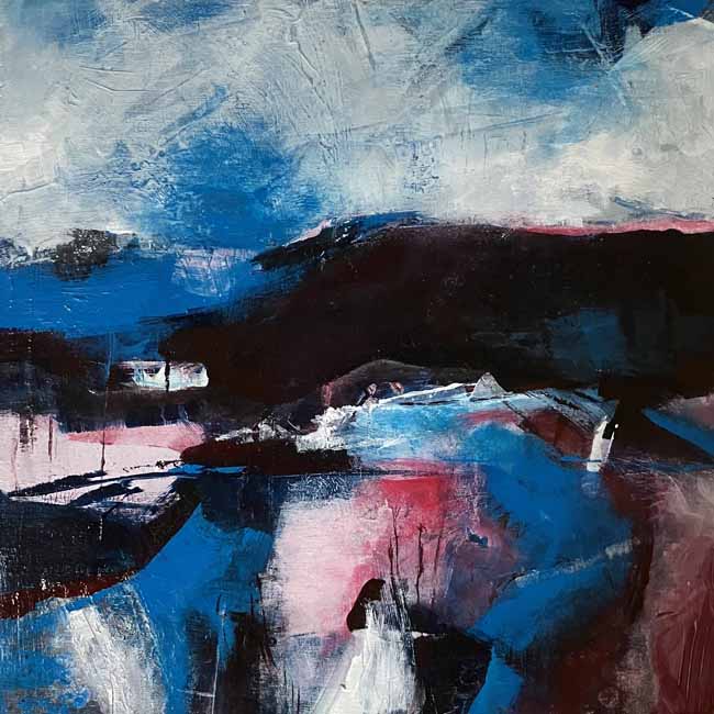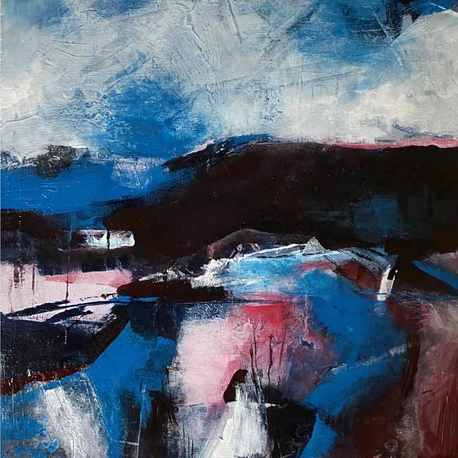 My paintings are of places special to me and based on photographs or sketches I have done on location where I work intuitively which gives the work a degree abstraction . Back in the studio I usually begin with no plan or intention in mind, other than having chosen a colour palette and a location in mind I suspect these colours reflect my mood at the time. I like to add layer upon layer, sometimes removing as much paint as I lay down, until something emerges that resonates with my thinking brain. Sometimes what emerges pleases me; sometimes it doesn't – in which case, I start over!