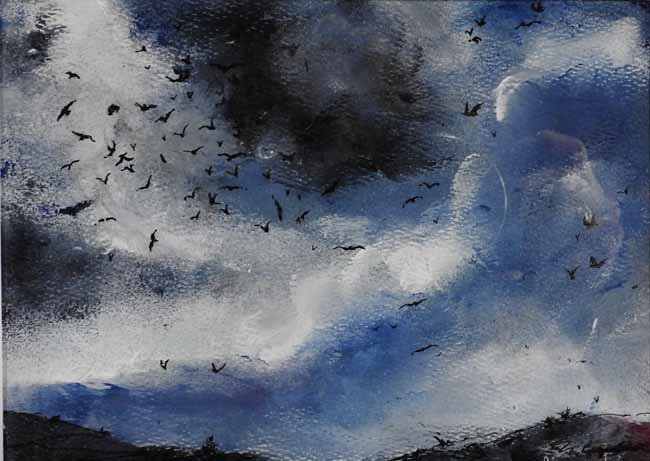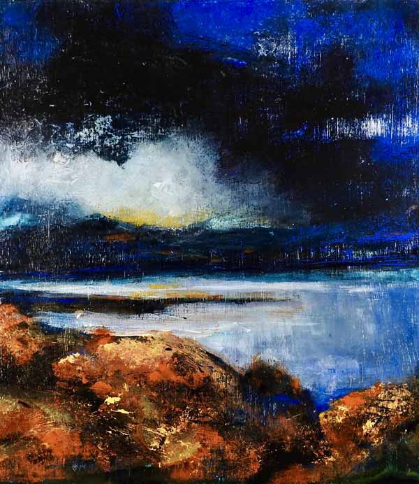 Inspired by her native landscapes her work is not aways a strict pictorial image of a location but often comes from a spontaneous reaction to the environment through an often unplanned process, as the work develops and reveals itself.