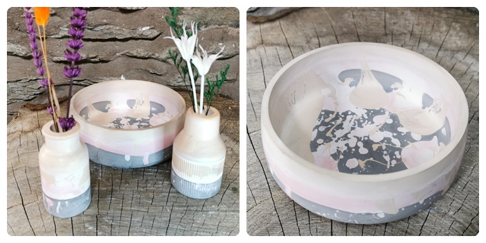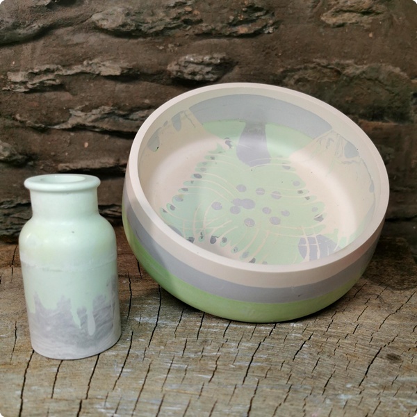 I'm working with some blends of materials that have much like a terracotta feel to them, the colours are mixed into the base materials, the process of pouring different colours feels to me like abstract painting in 3D and is very rewarding.