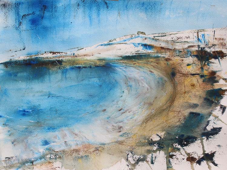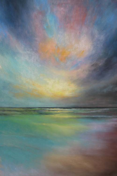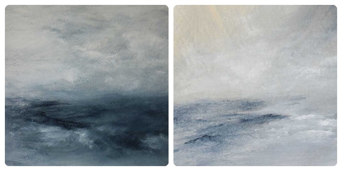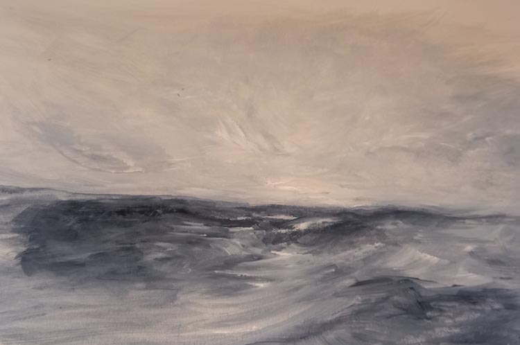 Kate works with acrylic paint on textured paper. Using expressive brushstrokes, she creates thought provoking images depicting the untamed nature of the elements.