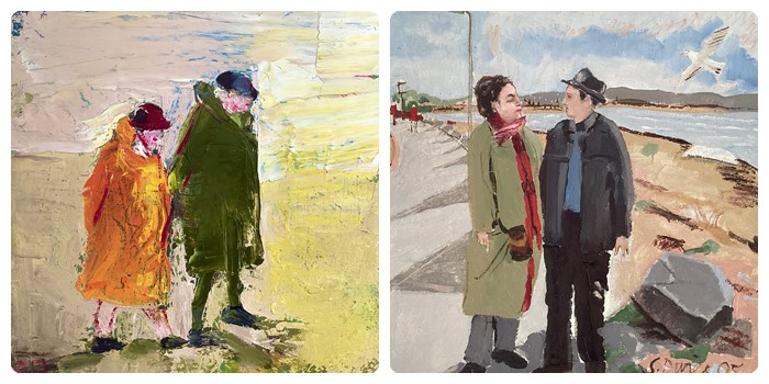 Recently I am inspired by the coastline around my home. I have become familiar with this area walking the same routes every day. I feel comfortable and reassured by the coastal paths in the sand dunes, the rhythmic elements of grasses following the direction of the air flow. Sunsets and the play of light on the sky and sand. The dynamic of people walking dogs. Upturned boats in a disordered heap. Seagulls flying high in the sky. Yellow gorse, Conwy Mountain and Puffin Island.
