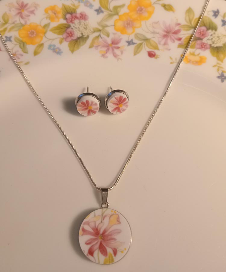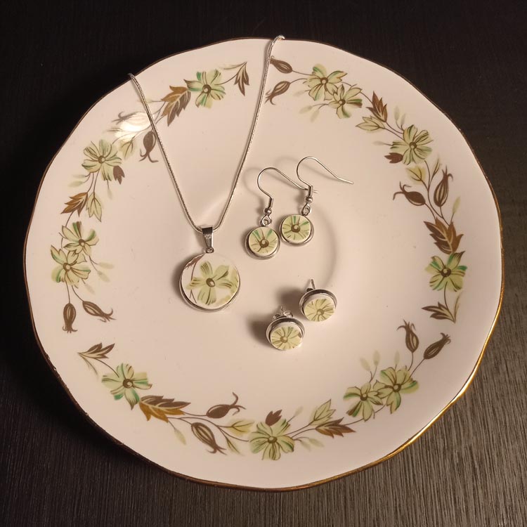 Kathryn and Tracey create jewellery made from beautiful up-cycled vintage china. Each piece is lovingly made by hand in North Wales. Reclaimed china plates are transformed into something new, wearable and unique.