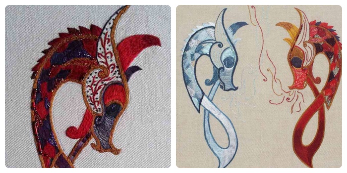 Katherine has been stitching since she was eight. She started with small simple kits and gradually taught herself other techniques and skills. Having trained as a primary schoolteacher, she taught for ten years, but due to illness, she left teaching and went to complete her Certificate from the Royal School of Needlework. She worked for Heritage Stitchcraft and ran Zweigart’s UK distribution for three years. Since 2003 Katherine has built up her business as a textile designer and tutor, focusing on traditional textiles, embroidery, felt making, and Iron Age textiles.