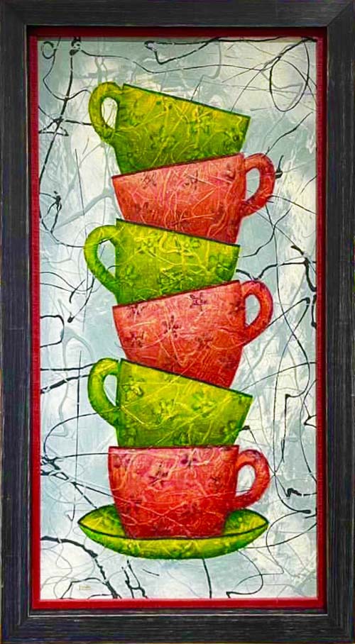 I’m primarily self-taught; I describe myself as a multi-disciplinary artist using vibrant colours and textures in my paintings as well as producing bespoke hand-painted mirrors and a love of drawing. Much of my work is based on nature and figurative art, however, I am diverse regarding subject matter as my eclectic-skilled work is sought by the Private, Commercial and the Public sectors, therefore you will notice a range of styles. Having gained multi awards; I have sold and worked closely with eminent clients and am widely published and working to commissions is very much a part of what I do, from small paintings to statement piece paintings for large walls!