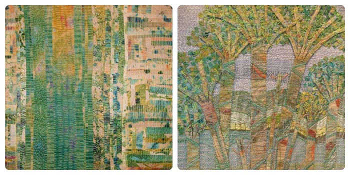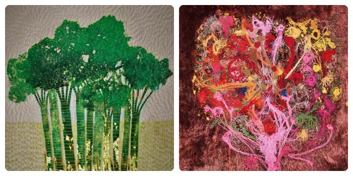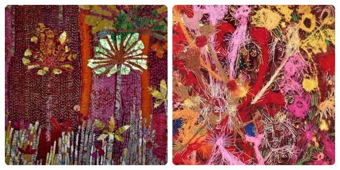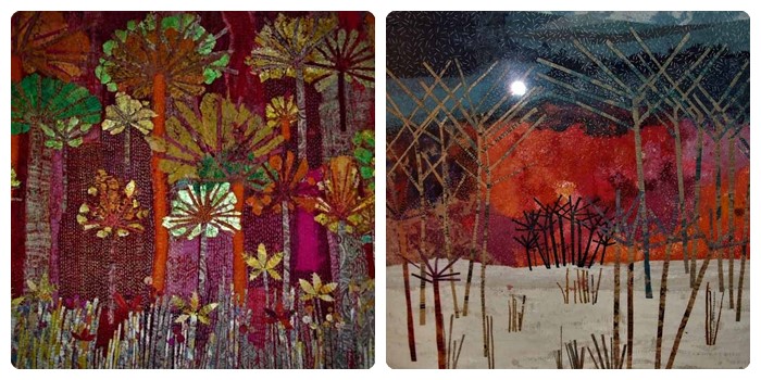 On retirement his interest turned to mixed media stitched collage with the use of fabric, paper, stained and oiled brown paper etc.