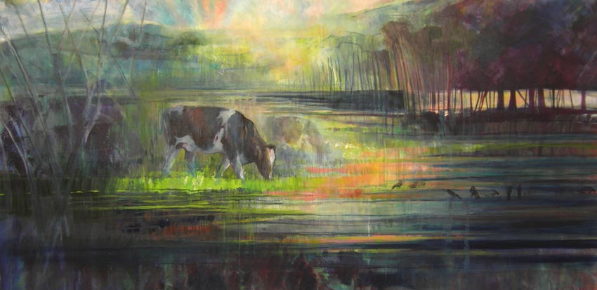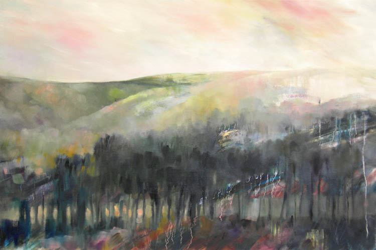 Her work is inspired by nature and landscape and could be described as semi-abstract. She aims to give a sense of place, capture a fleeting moment, with shape, line & texture often including an element of realism.
