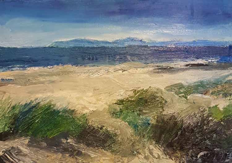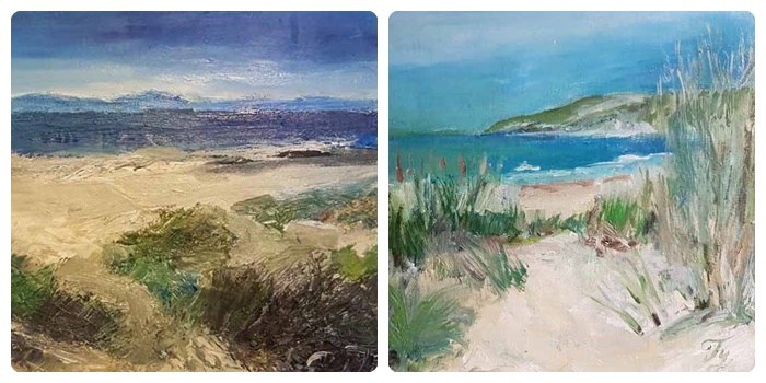 Wendy trained in Art, Textiles, Design and Education in Bangor (B Ed Hons) and later went on to train in Graphic Design. Wendy’s earliest artworks were mainly watercolours, inks and pencil work. She also designed cards under the name Wendy House Publishing. Wendy’s knowledge of textiles and design has been used to produce dance costumes and props for theatre and more recently to create textured canvases as a ground for some of her oil paintings.